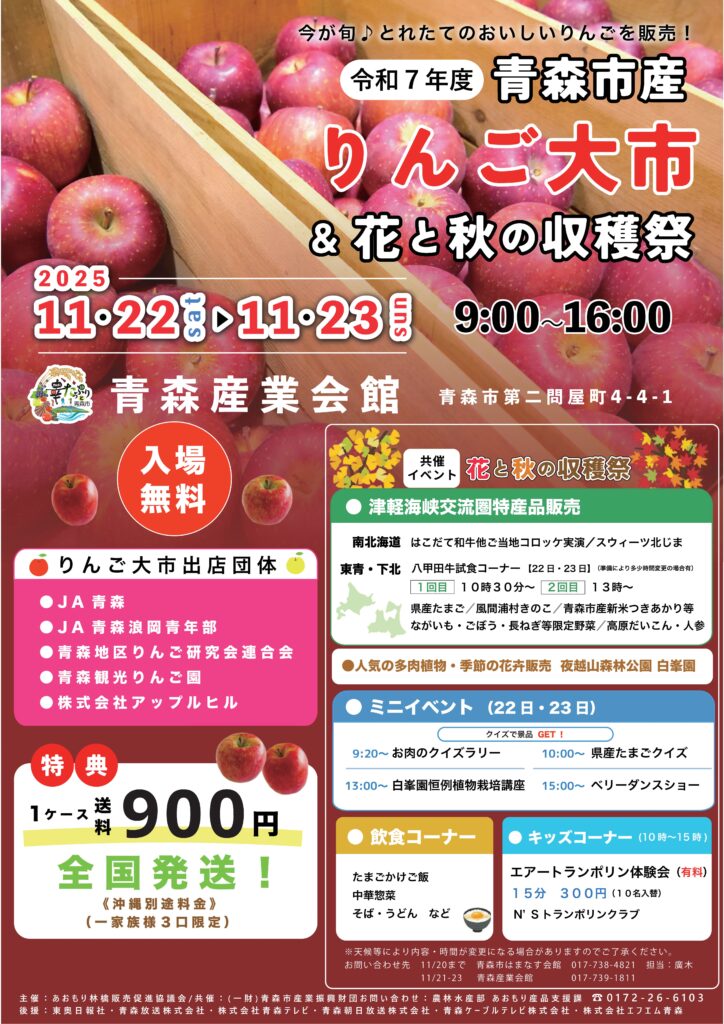 「令和7年度青森市産りんご大市&花と秋の収穫祭」において、八甲田牛試食コーナーが設置されます。ご来場の際は、ぜひお立ち寄りください。