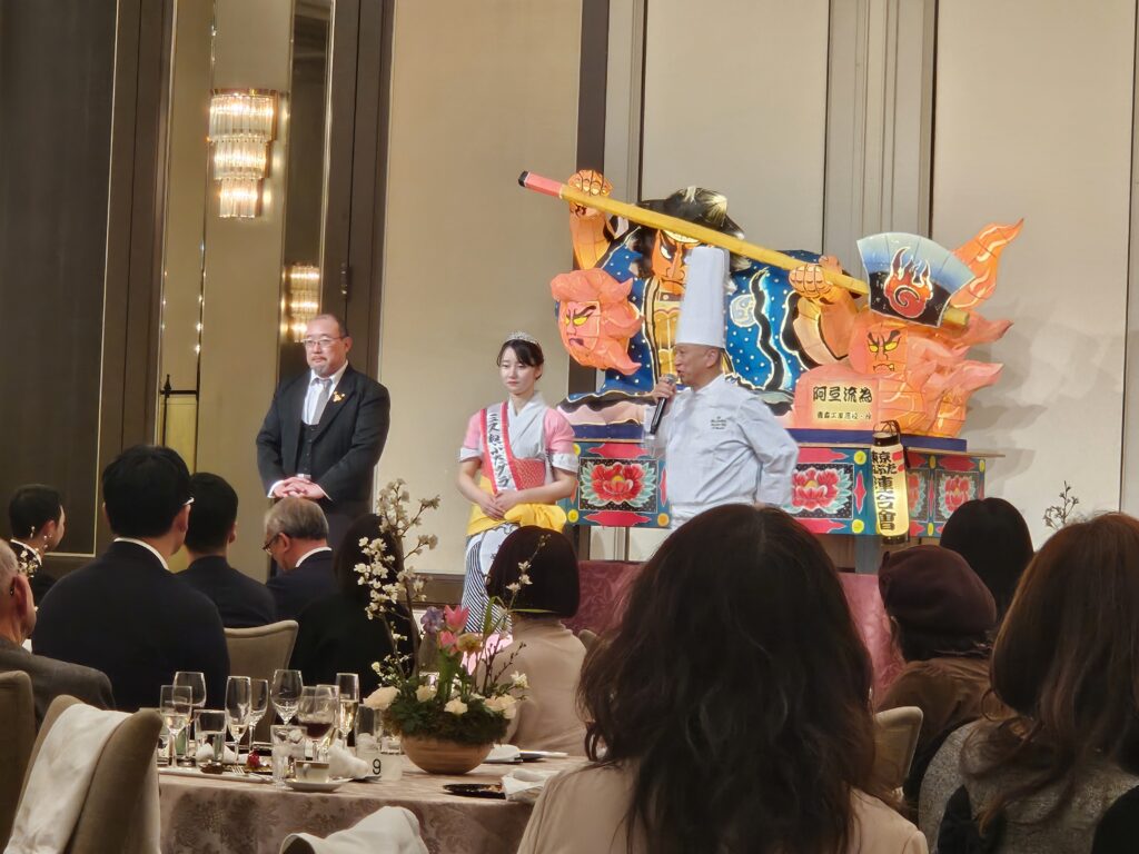 メインディッシュに八甲田牛を使用いただいたほか、ねぶた祭囃子の演舞や津軽三味線の演奏も披露され、まるごと青森を体感いただけるイベントとなりました。